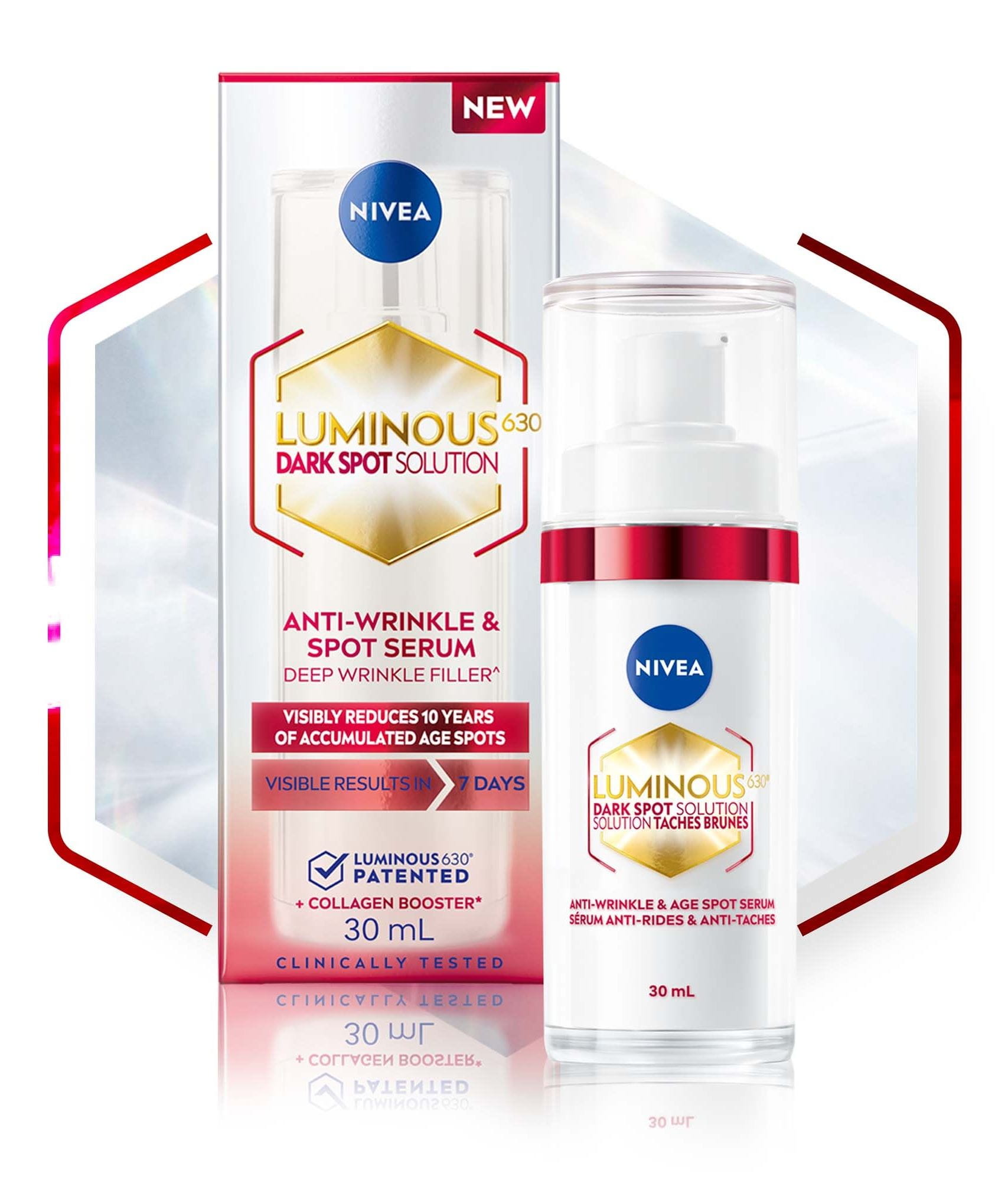 We’ve expanded the NIVEA LUMINOUS630® range with two new serums that are specially formulated to reduce the appearance of wrinkles, different types of dark spots, post-acne marks and age spots.