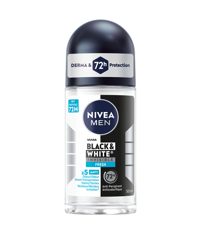 NIVEA Black & White Fresh is a men’s deodorant that provides 72H protection against sweat and odours. The patented anti-stain formula provides white mark protection on black clothing & anti-yellow staining on white clothing–plus, the scent leaves you feeling fresh and clean all day.